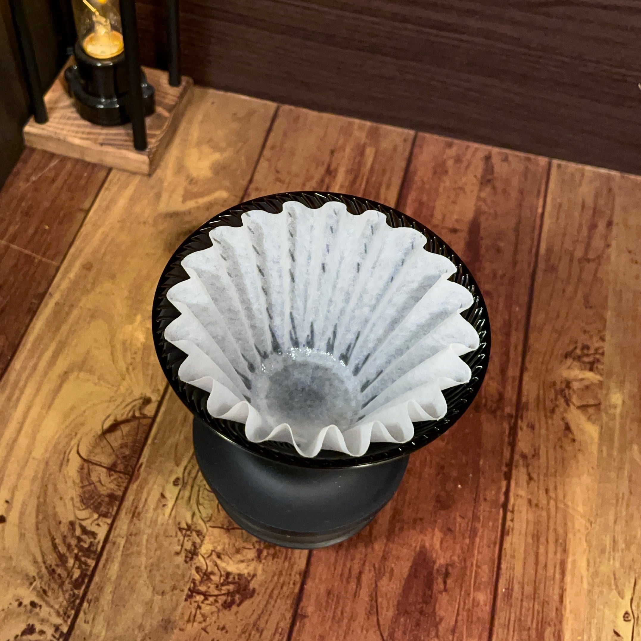 円錐ドリッパーであればV60などの角度のドリッパーであれば使用できますが、コーヒーフィルターの上部がドリッパーから飛び出るなど、ビジュアル面の面でORIGAMIドリッパーでウェーブフィルターを使用する際に最も適しています。