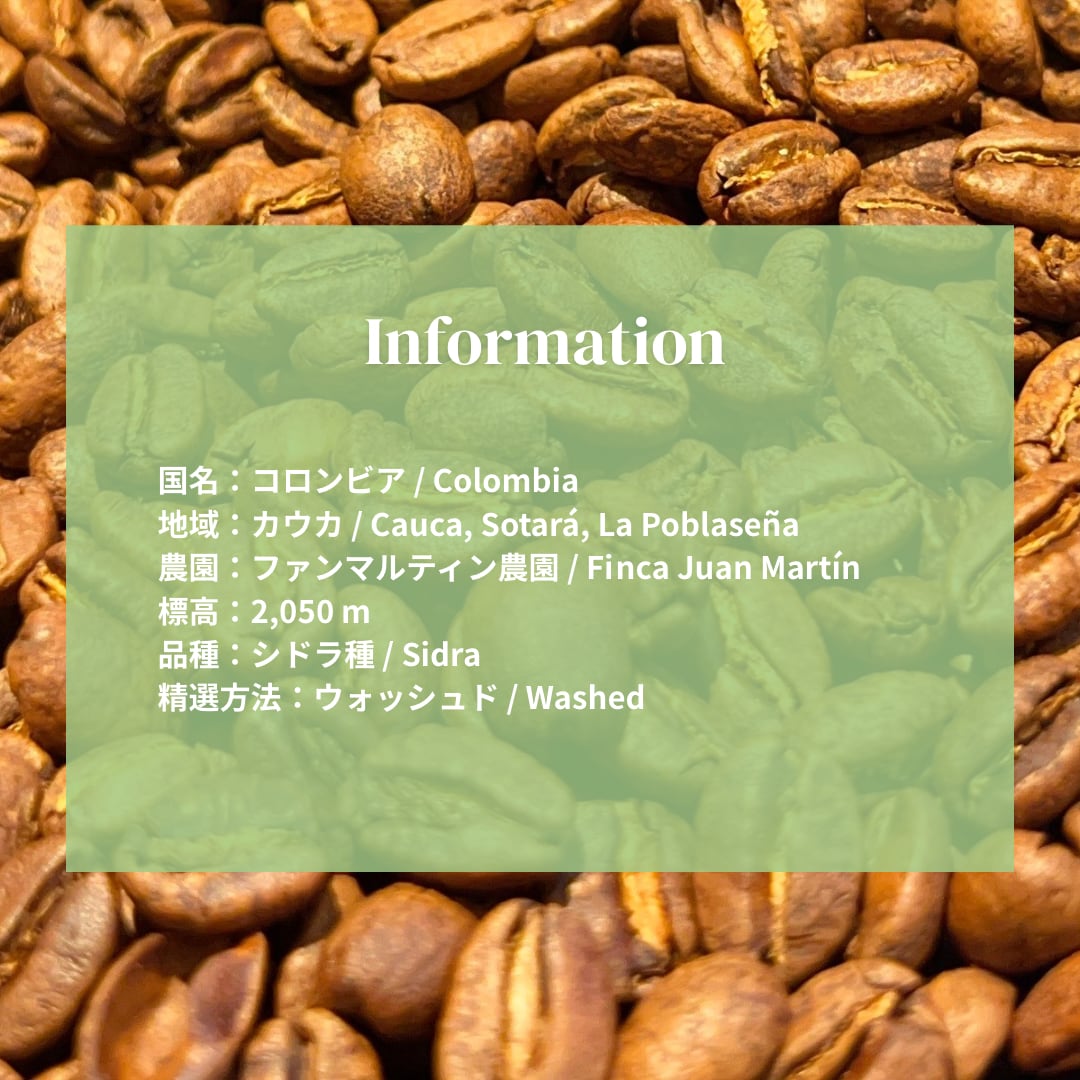 本ロットは、コロンビアの輸出業者でも有名なBanexport社が支援を行うファンマルティン農園(Finca Juan Martín)にて生産されており、高い品質のロットを生み出すための実験・改善も数多く行われています。