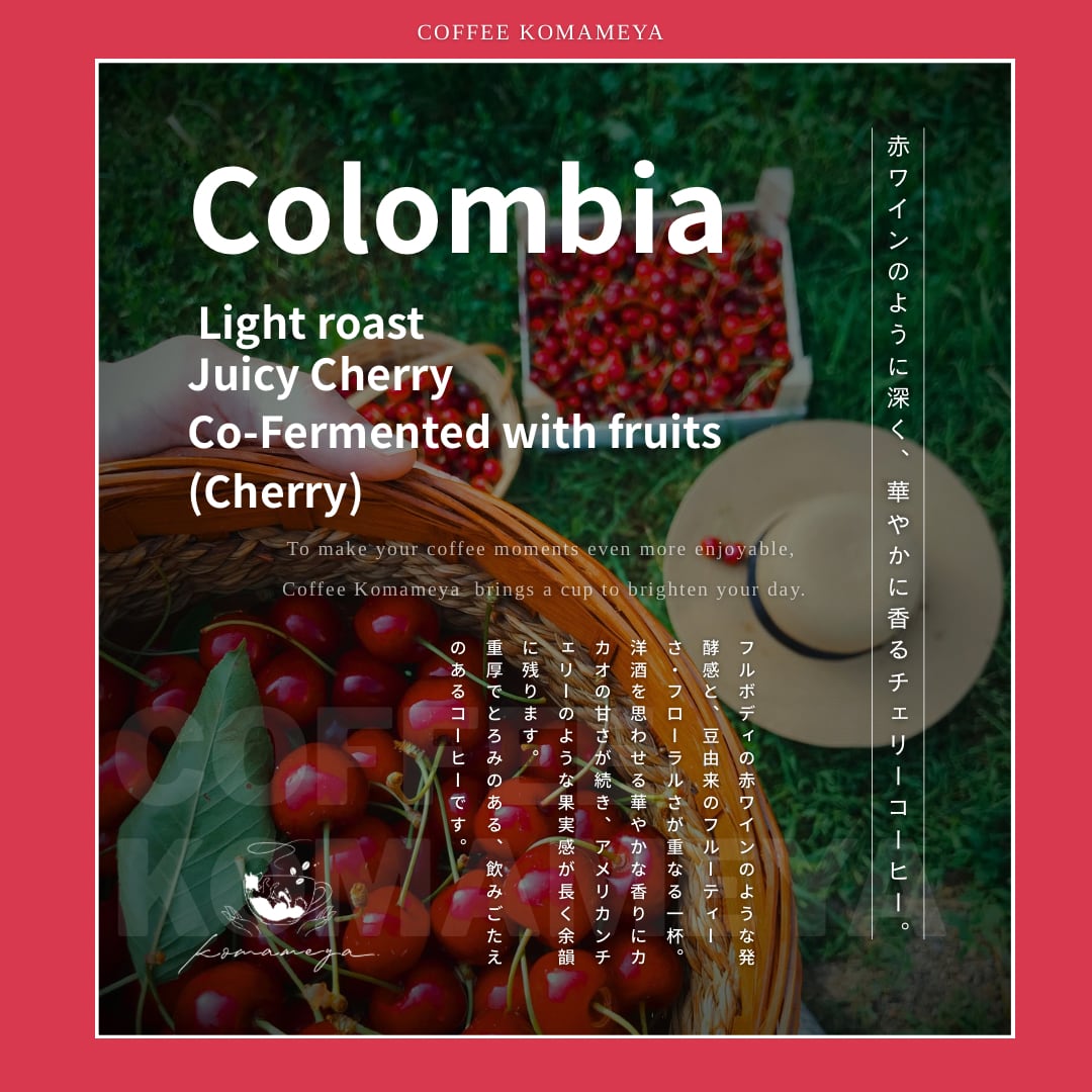 フルボディの赤ワインを思わせるパワフルな発酵感を軸に、豆由来のフルーティーさやフローラルな香りも重なり、単純なチェリー風味に留まらない、奥行きのある味わいに仕上がっています。