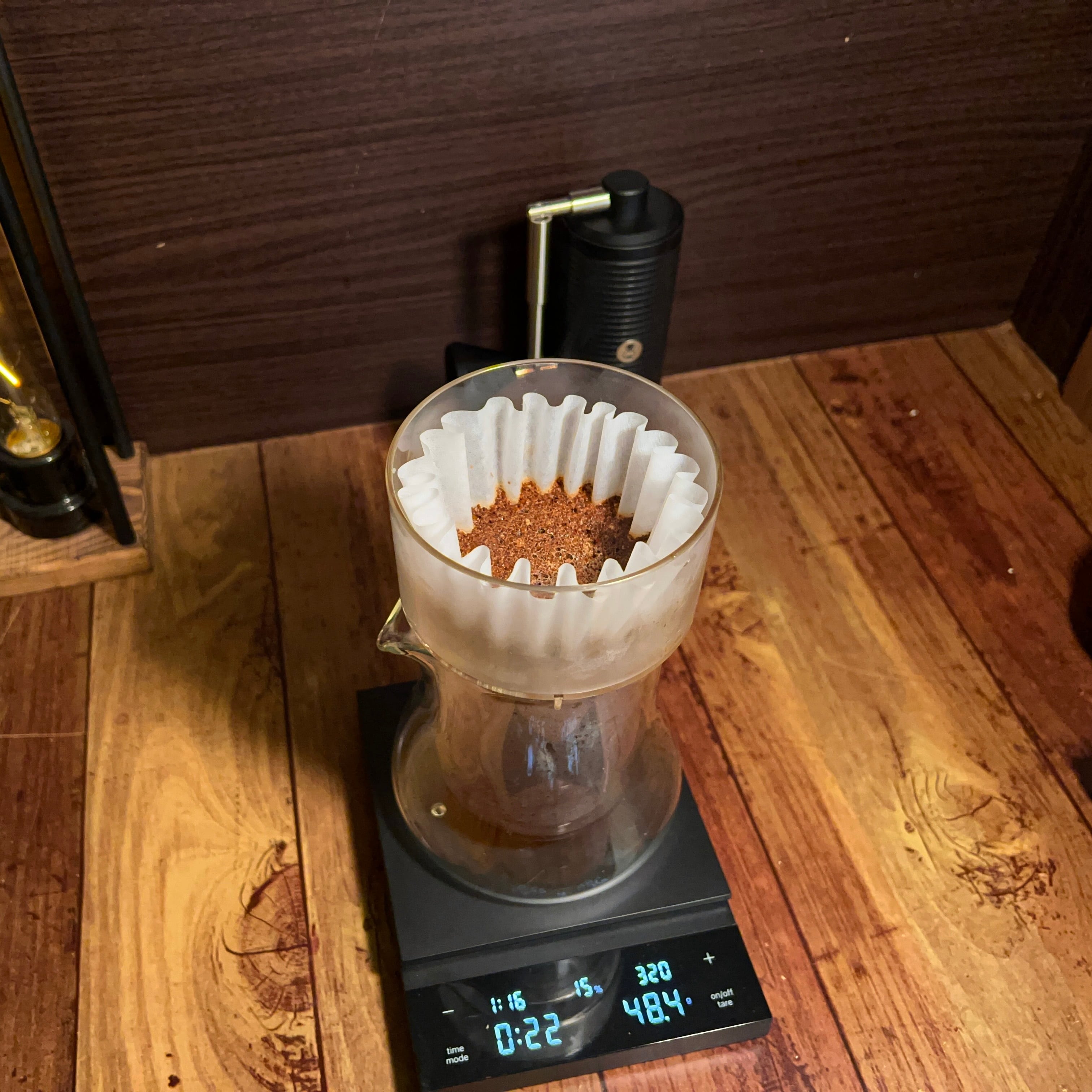 ①ペーパーに細挽きの粉を15gセット