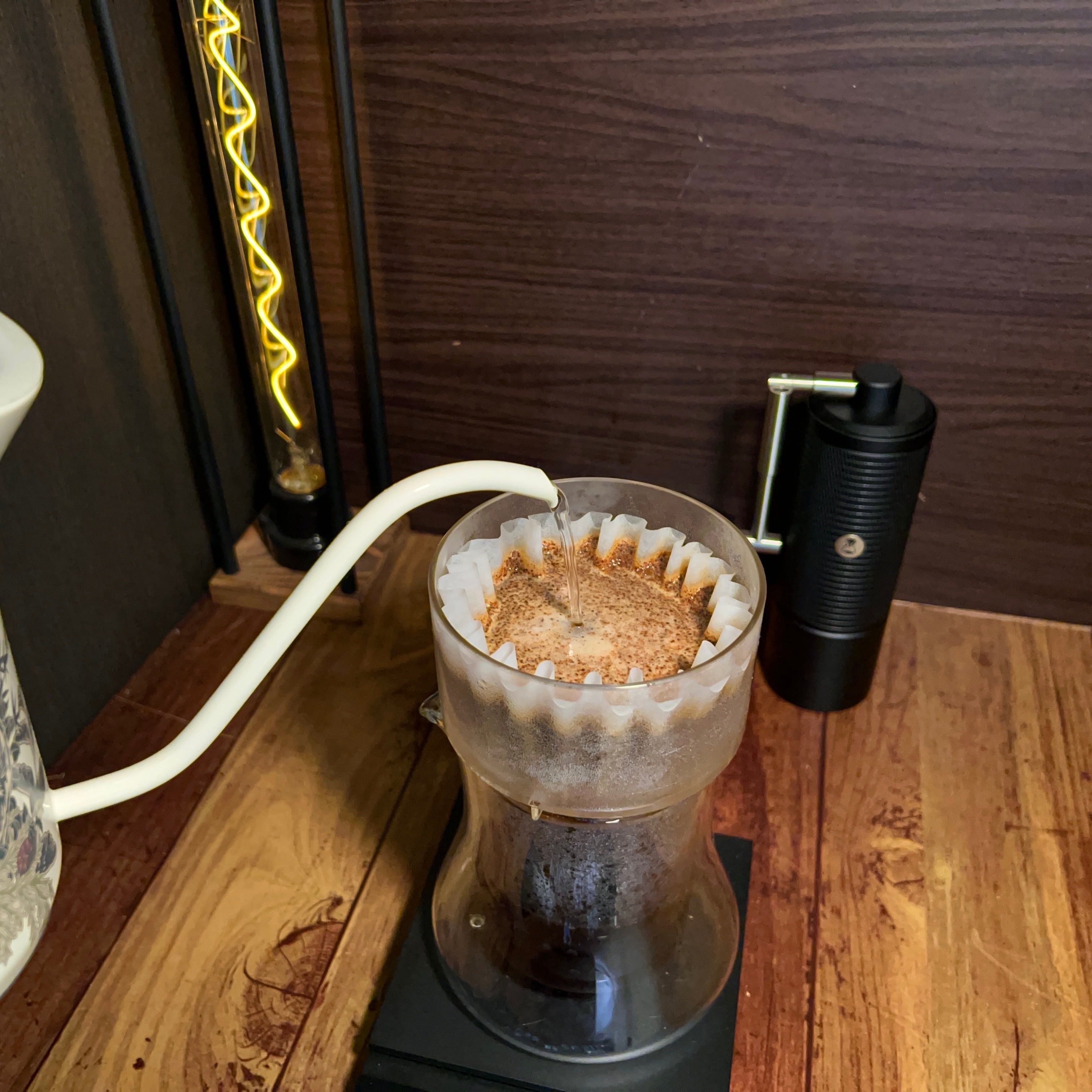 しかし、当ドリッパーは抽出が遅いわけではないため、実際には一般的な平底ドリッパーと同じように運用する事が可能です。