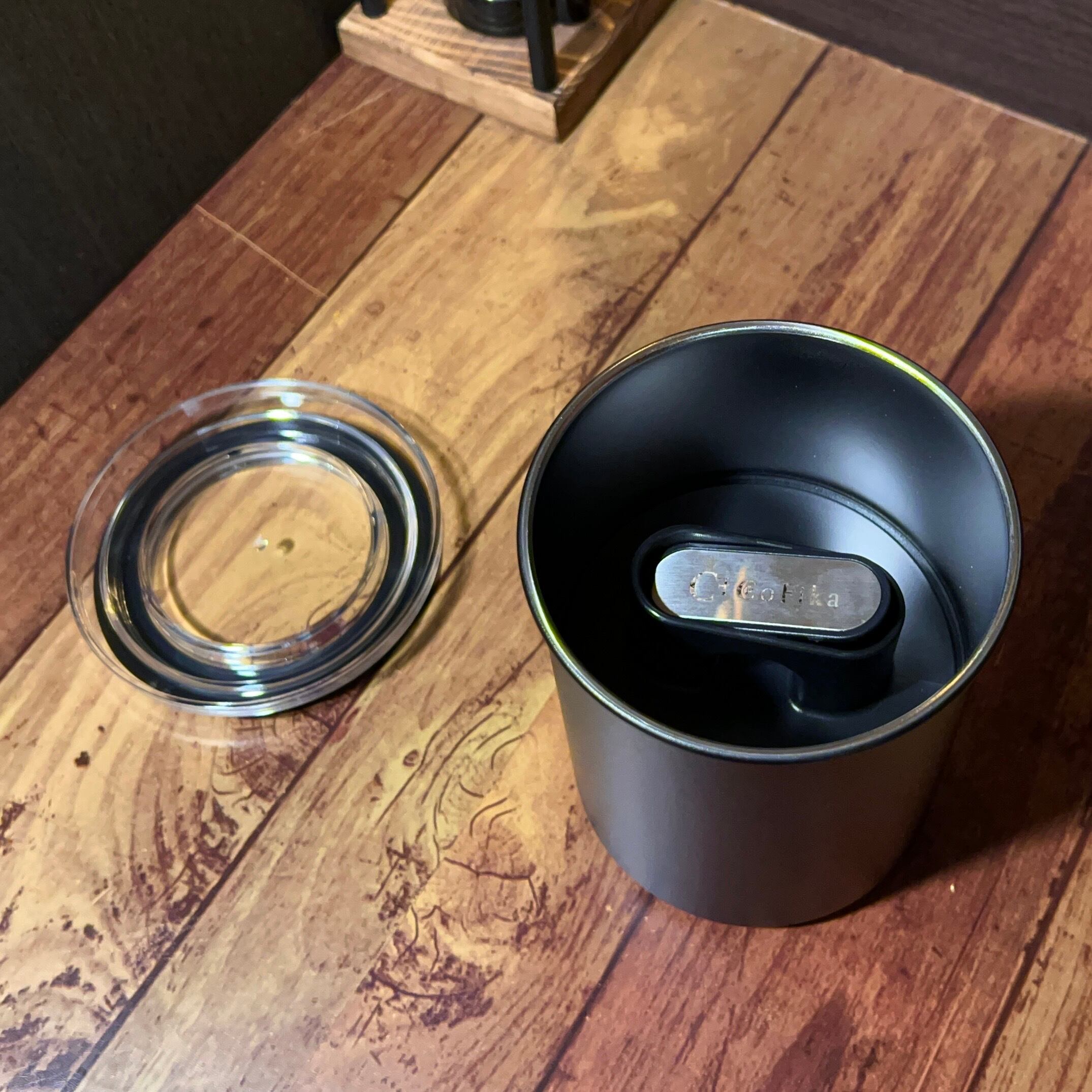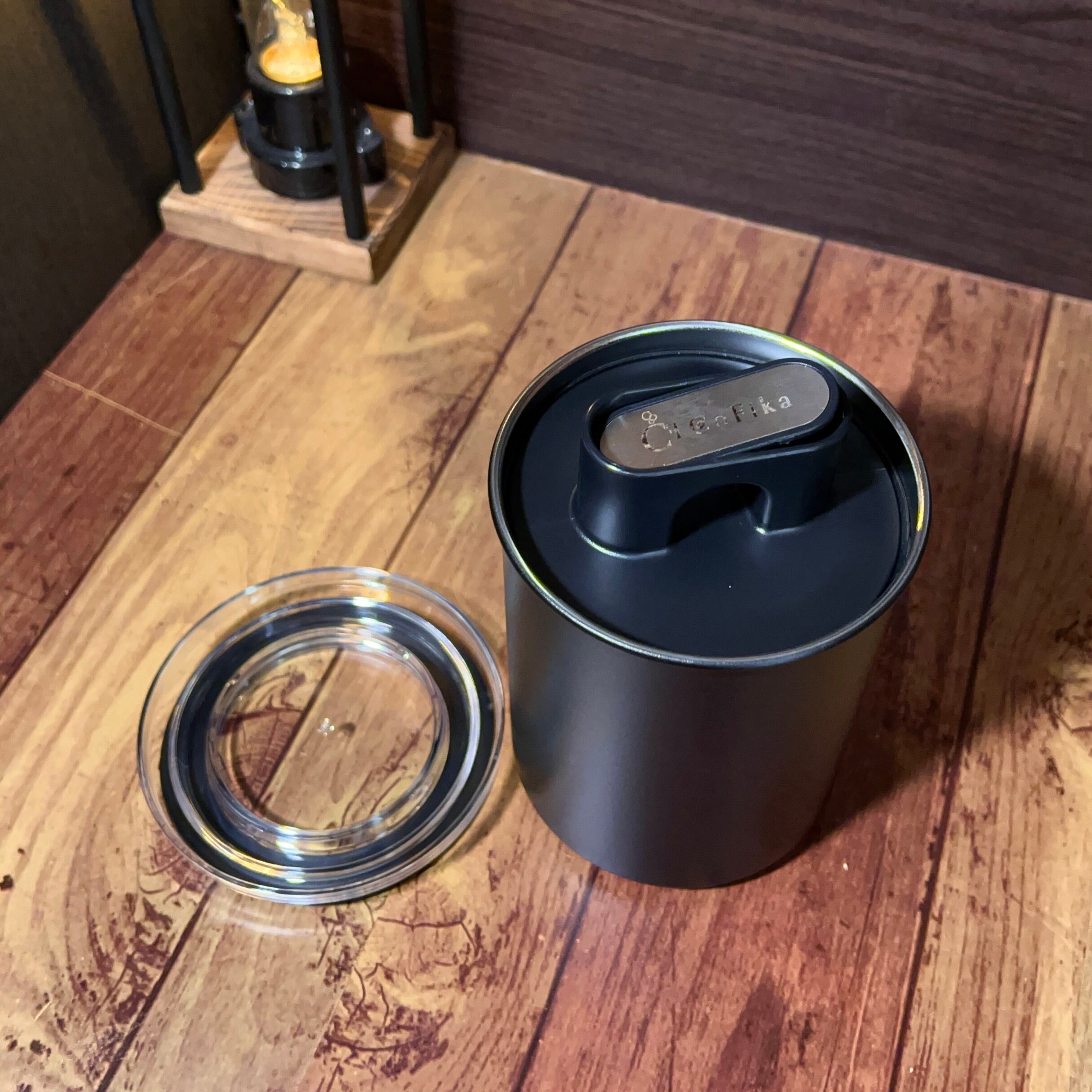 コーヒーキャニスターといえば、単に蓋を閉めるだけのものだったり、蓋から脱気するなどの方式が一般的です。