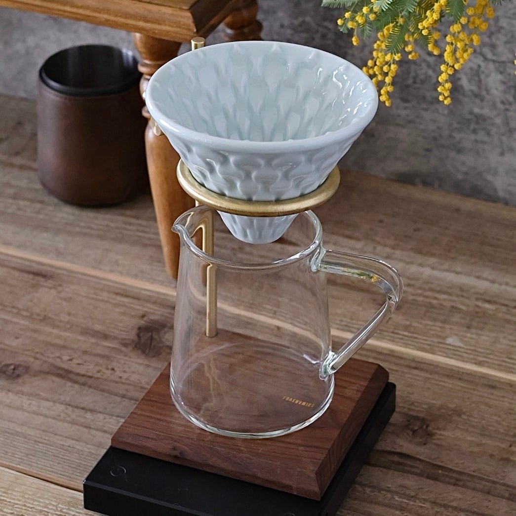 400ml近く淹れたい場合は、ドリッパースタンドなどを用いると2〜4杯用のドリッパーを用いてもビジュアルのバランスが良くなります。
