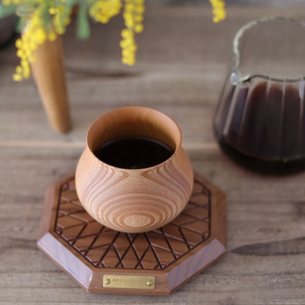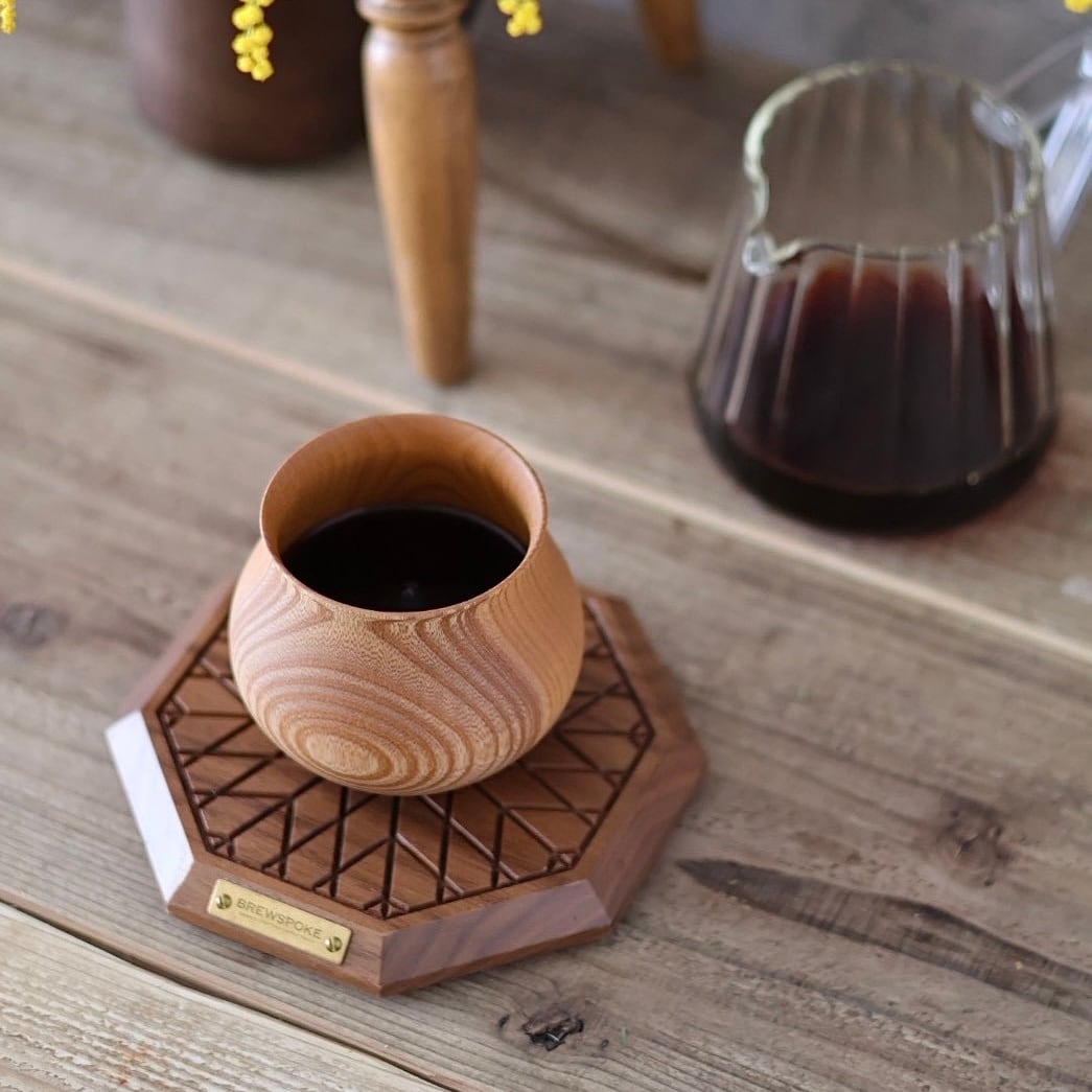 ワイングラスのような構造によりコーヒーのアロマが鼻付近に集中する事で、コーヒーの風味体験を最大限に引き出すことを可能としているのが「木の器」です。