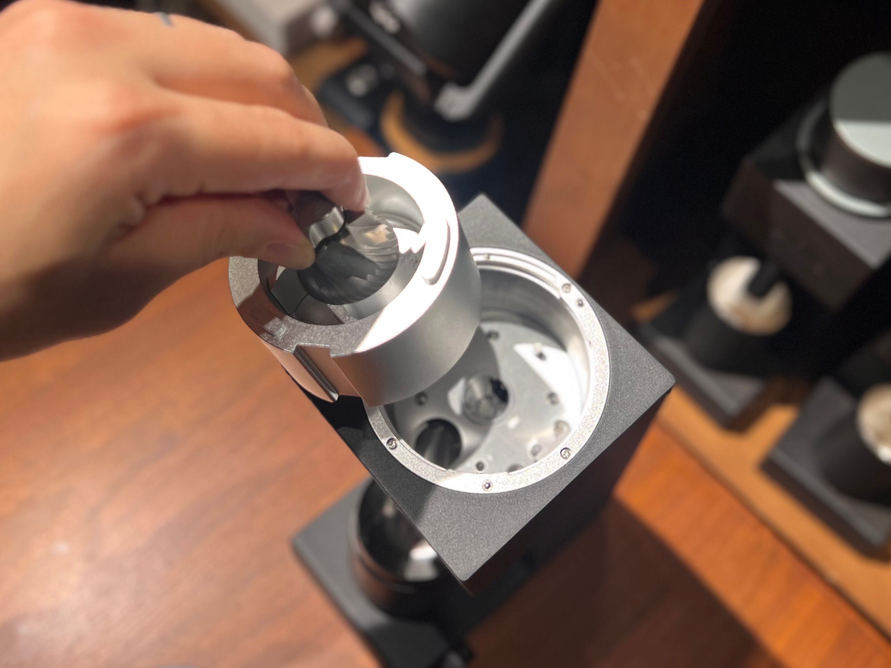VS4は独自技術により、コーヒーミルのコアユニットとなる刃へのアクセスがワンタッチで行えます。