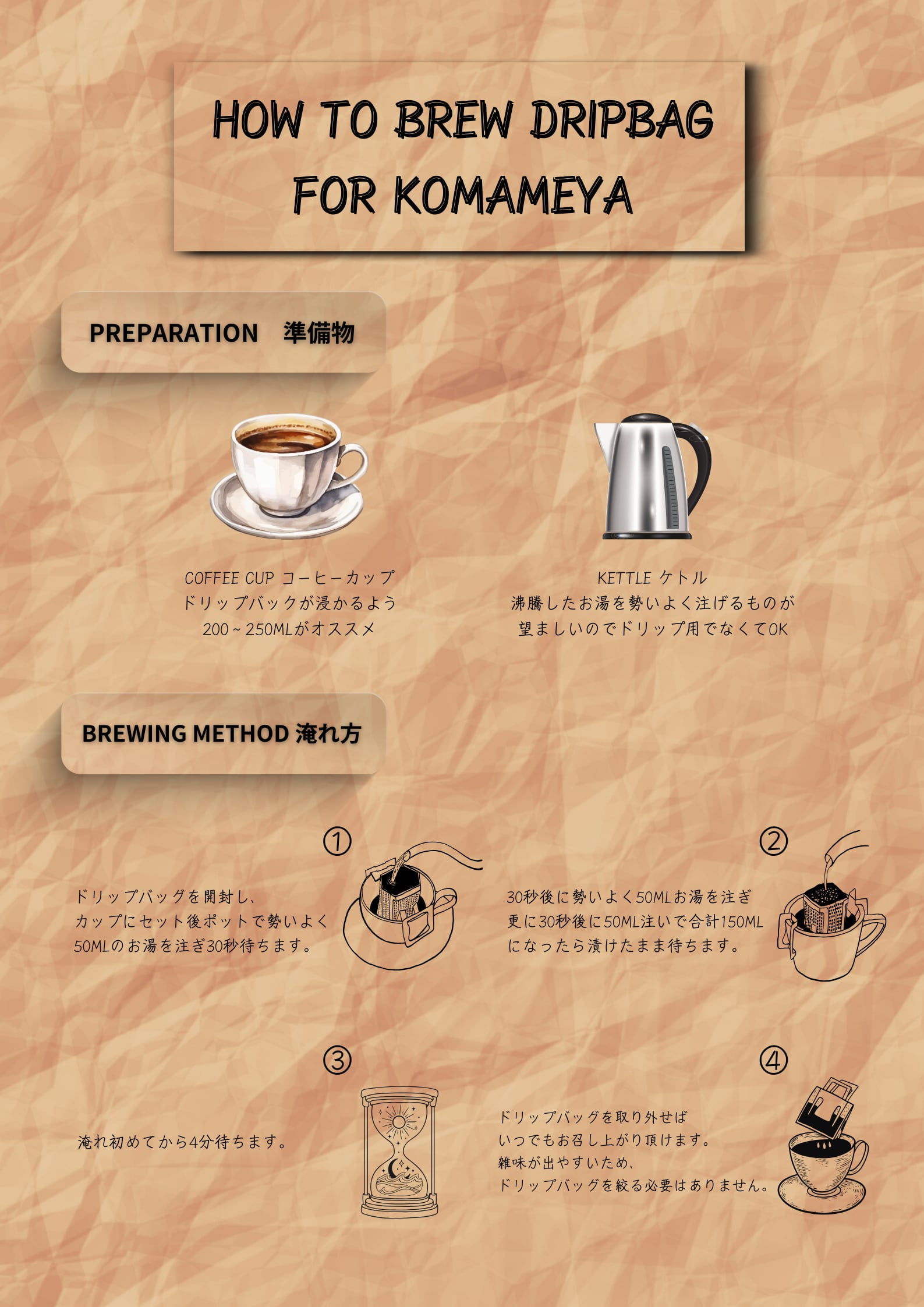 ※「自宅のミルで、ドリップバッグに使用した豆を挽きたい」という方のために、別途20gを豆のまま添付する事が可能です。希望の場合はオプションにてご指定下さい。