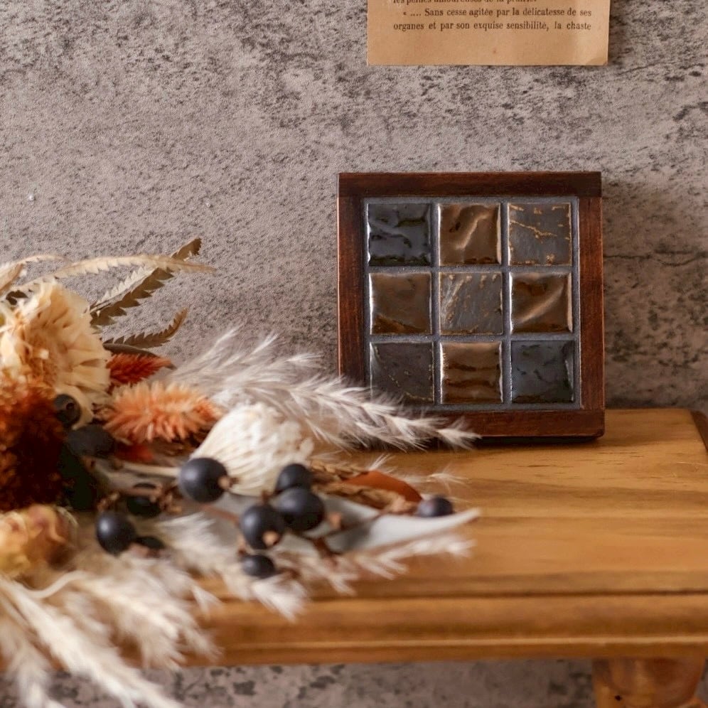 タイルと木が融合した唯一無二の製品を生み出すブランド「kotoka」様とのコラボにより誕生した耐熱性のあるタイルコースターです。