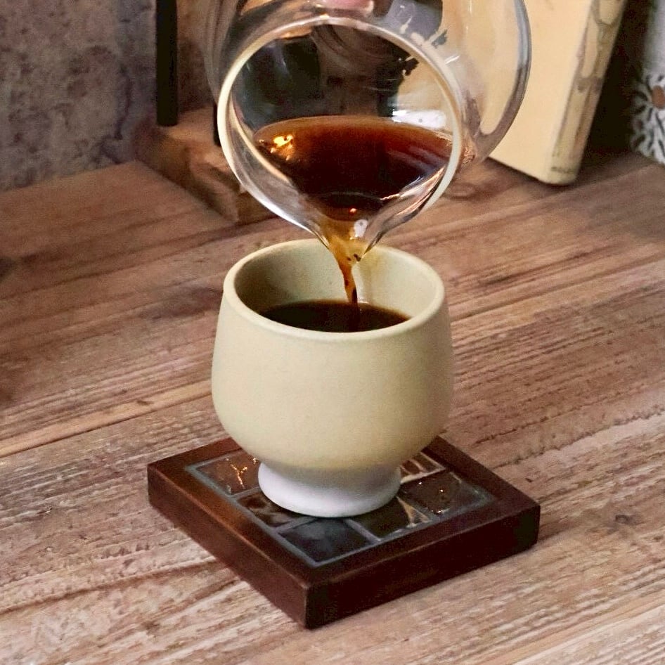コースターなのでコーヒーカップやグラスは勿論、耐熱性を生かして小型のドリップポット(300〜600mlまで)やマキネッタを置くマットとしての役割も担えます。