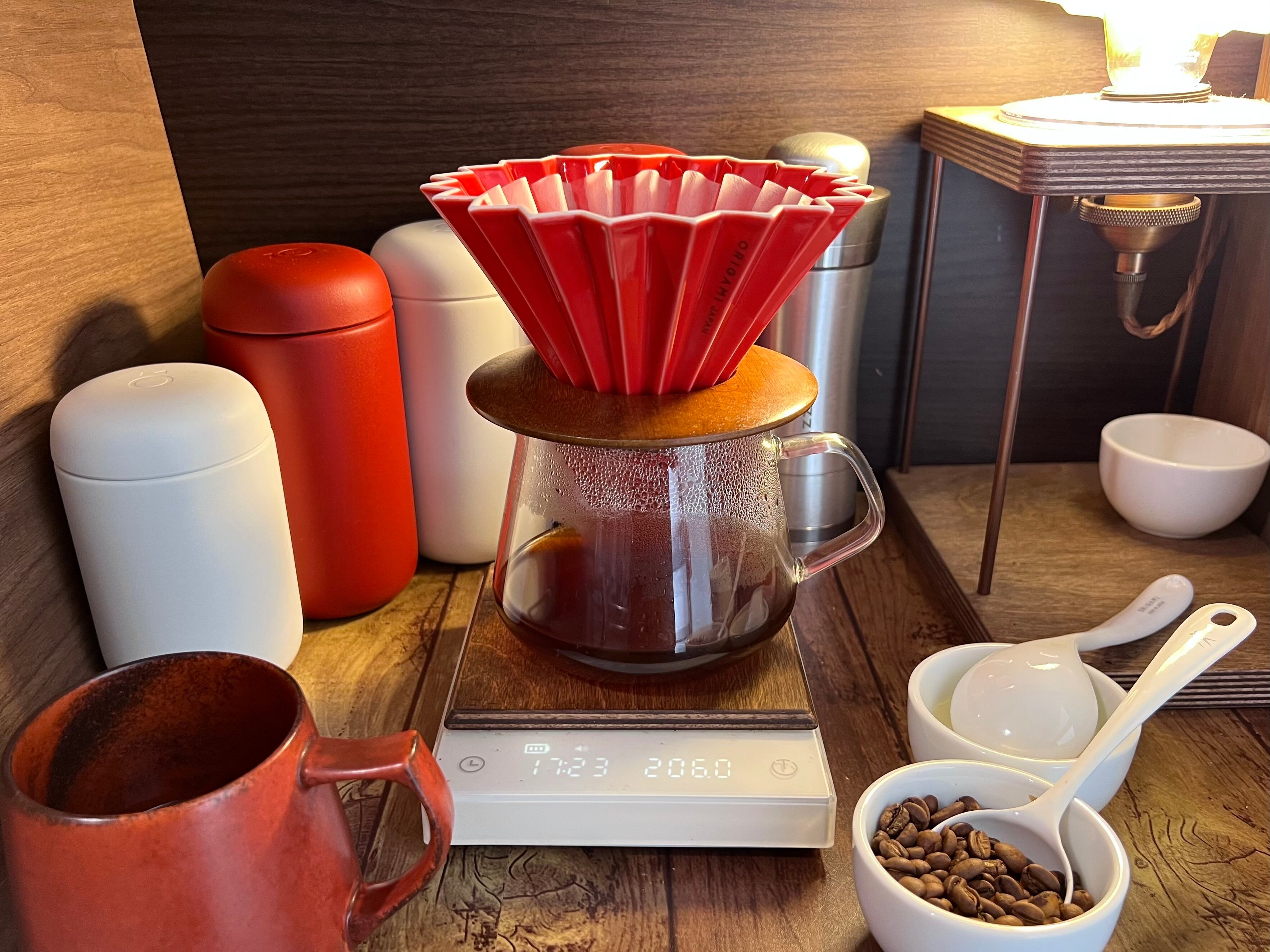 個人的に磁器タイプはプラスチック製のドリッパーホルダーよりも木製ホルダーがよく似合います。