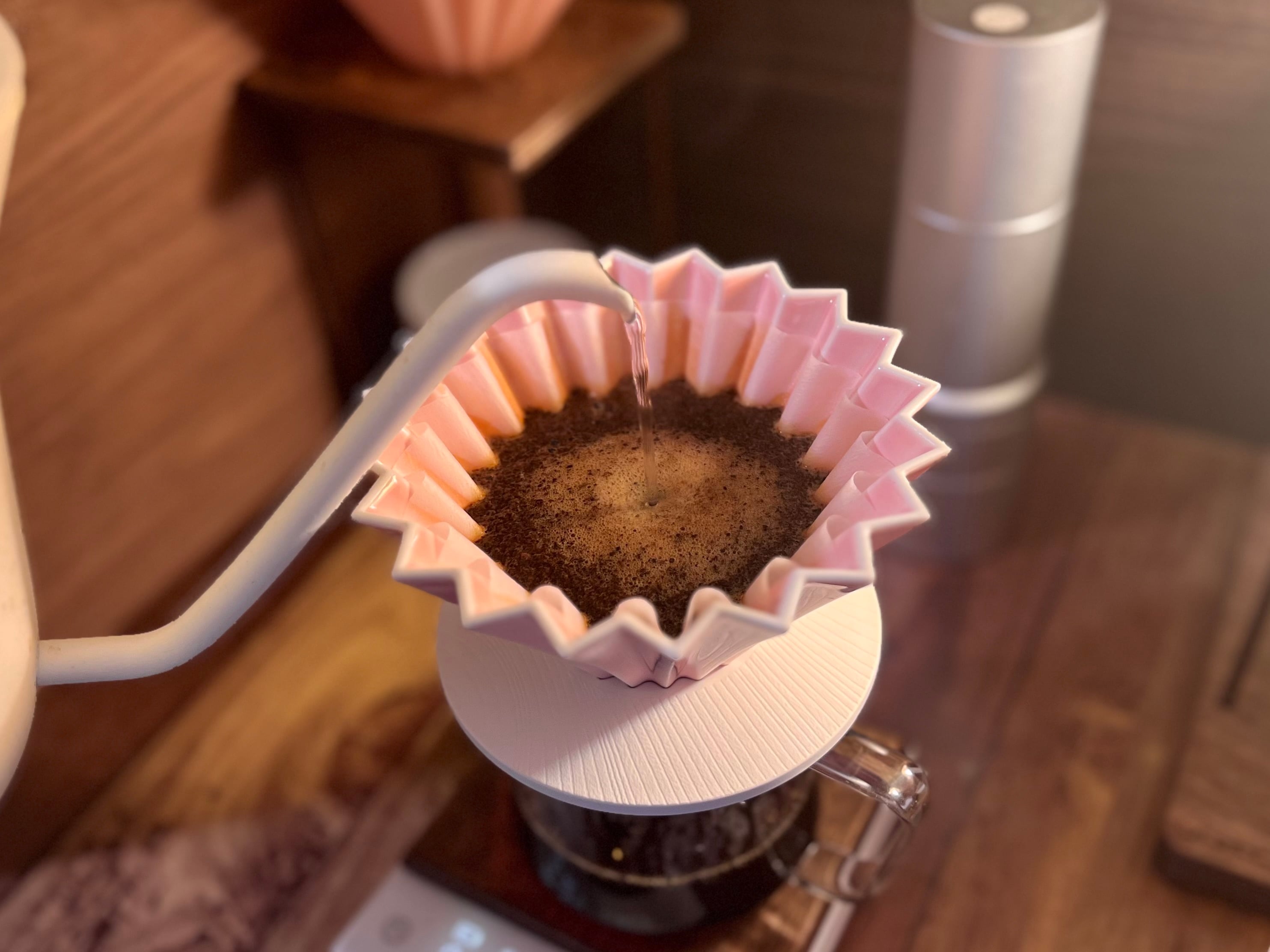 なぜならオリガミドリッパーは他のドリッパーと比較して円錐フィルターとドリッパーの接着面が少ないからです。