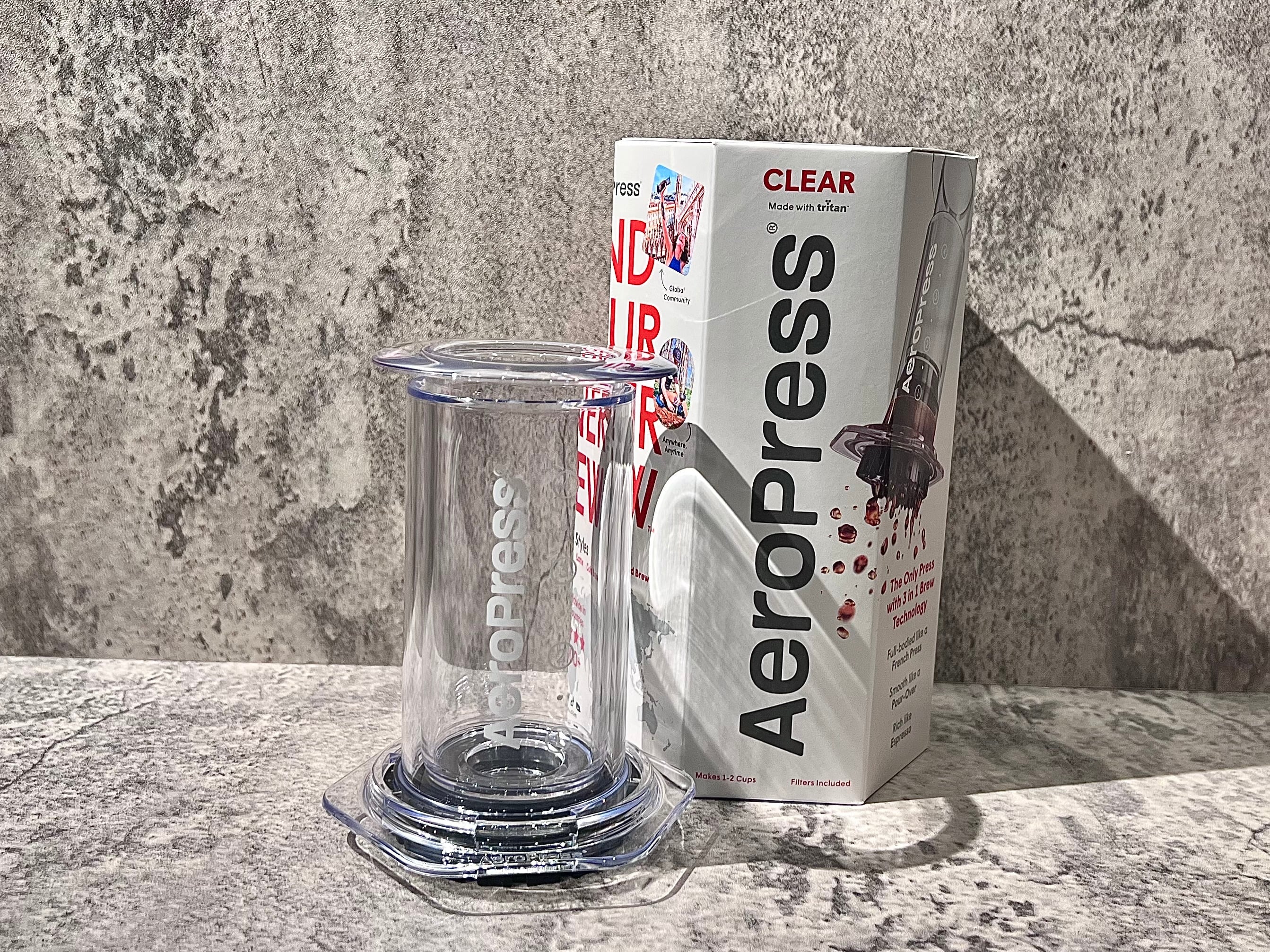 通常のエアロプレスと素材が違い、透明性が高く内部のコーヒー粉や液体の様子が良く見えるタイプです。