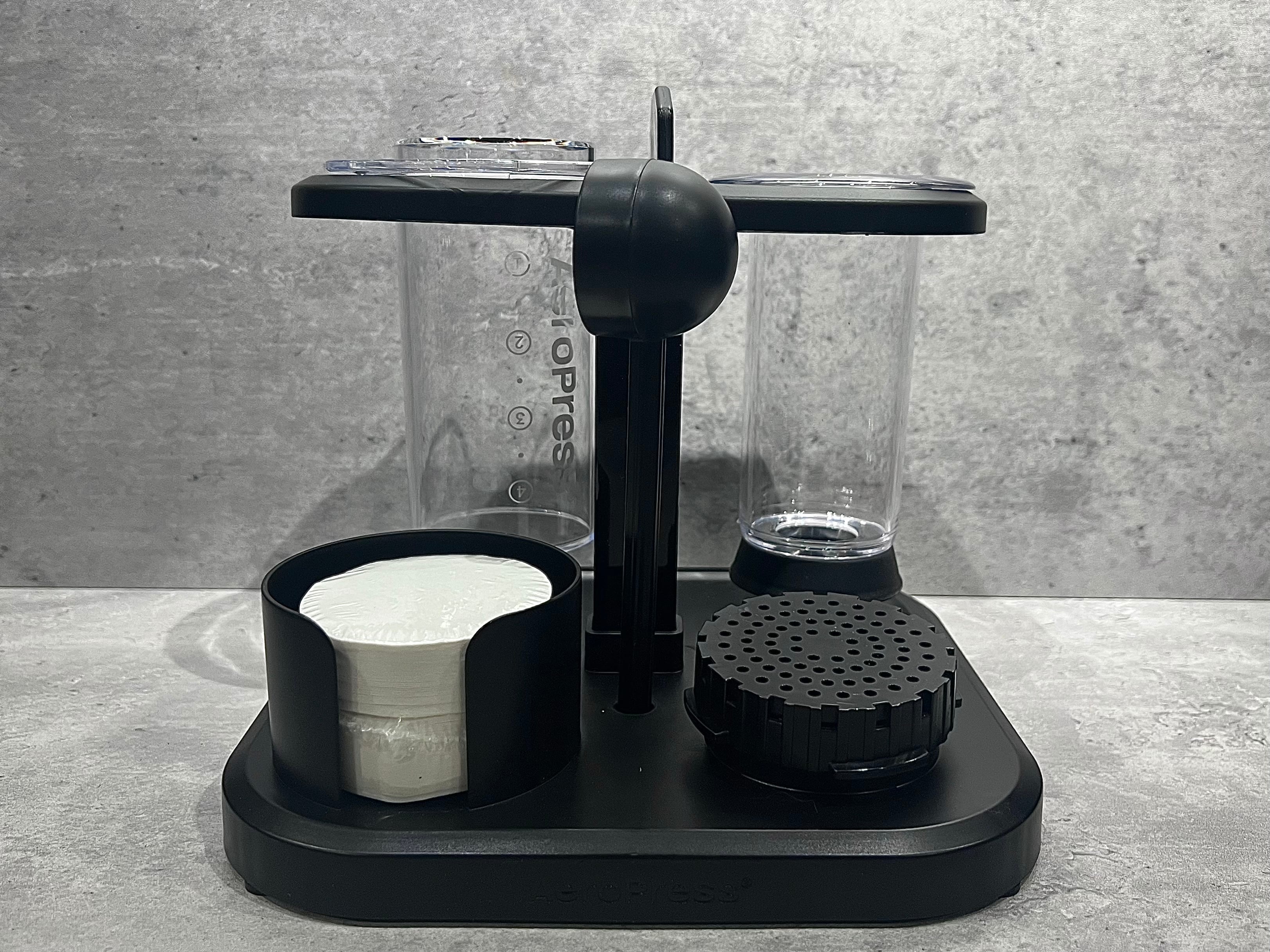 パーツがバラバラで比較的場所を取りがちなエアロプレスですが、固定スタンドの登場によりオシャレに賢く収納できるようになりました。